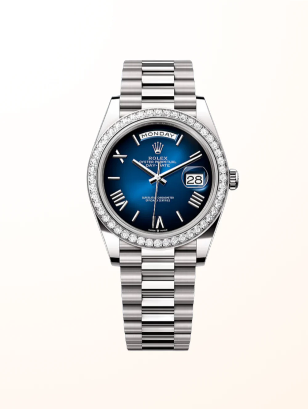 Day-Date 40 WG Diamond Set Blue Ombre Roman