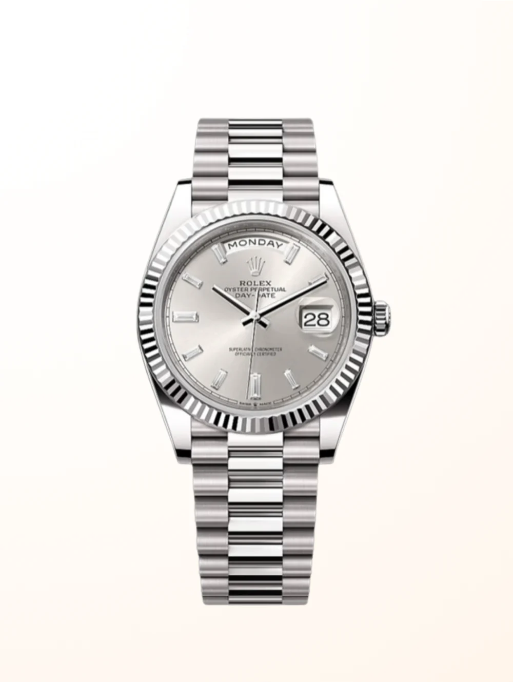 Day-Date 40 WG Silver Baguette
