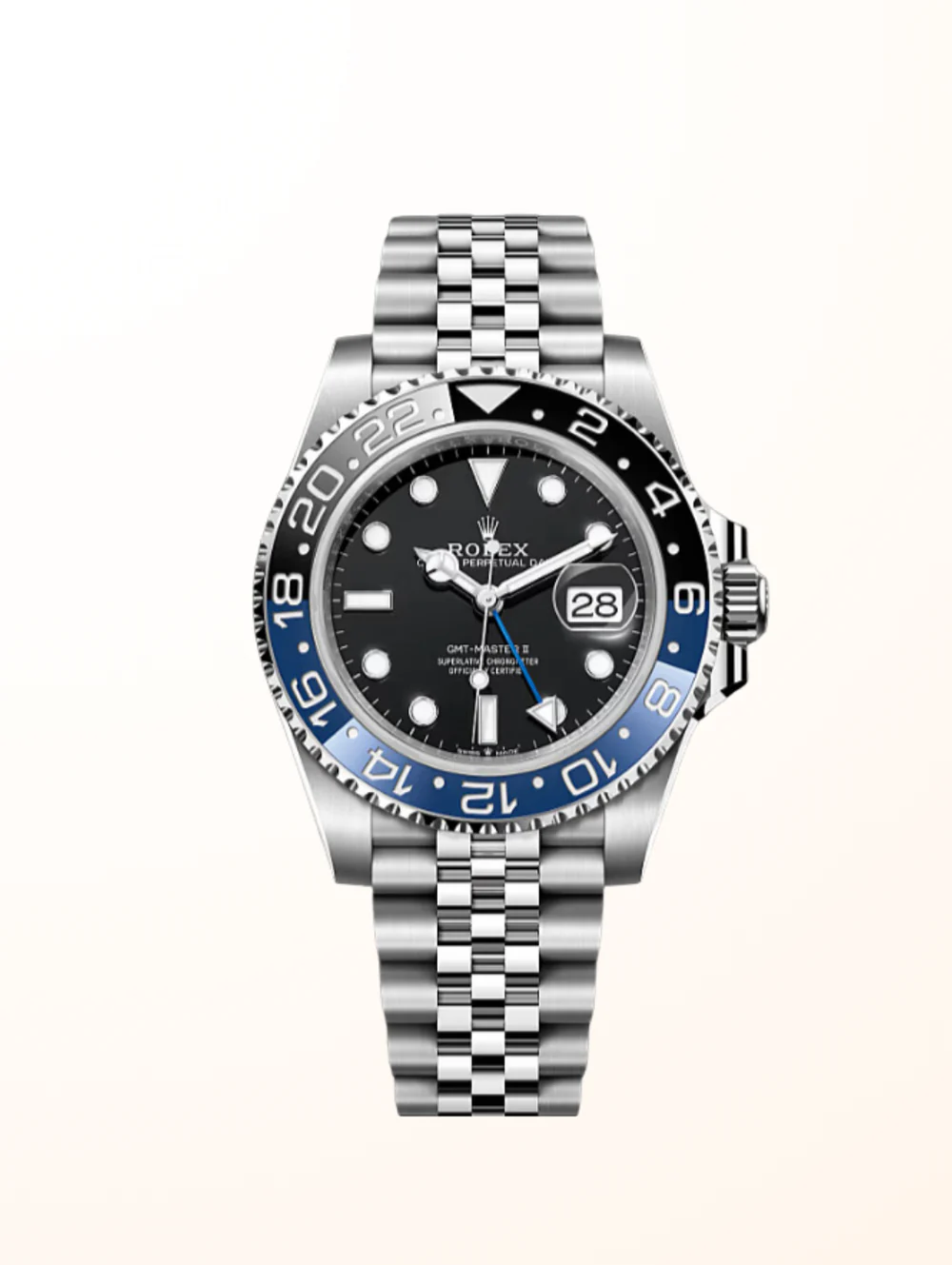 O Rolex GMT-Master II é um relógio de viagem de primeira linha, com uma caixa de 40 mm feita em aço inoxidável, Rolesor ou ouro 18k. Seu mostrador diferenciado oferece dois fusos horários e uma luneta giratória de 24 horas. Alimentado pelo movimento Calibre 3285 com reserva de marcha de 70 horas, garante precisão e confiabilidade. A pulseira Oyster com extensão Easylink e o design à prova d’água e resistente a arranhões fazem do GMT-Master II uma escolha versátil e elegante para viajantes e profissionais.