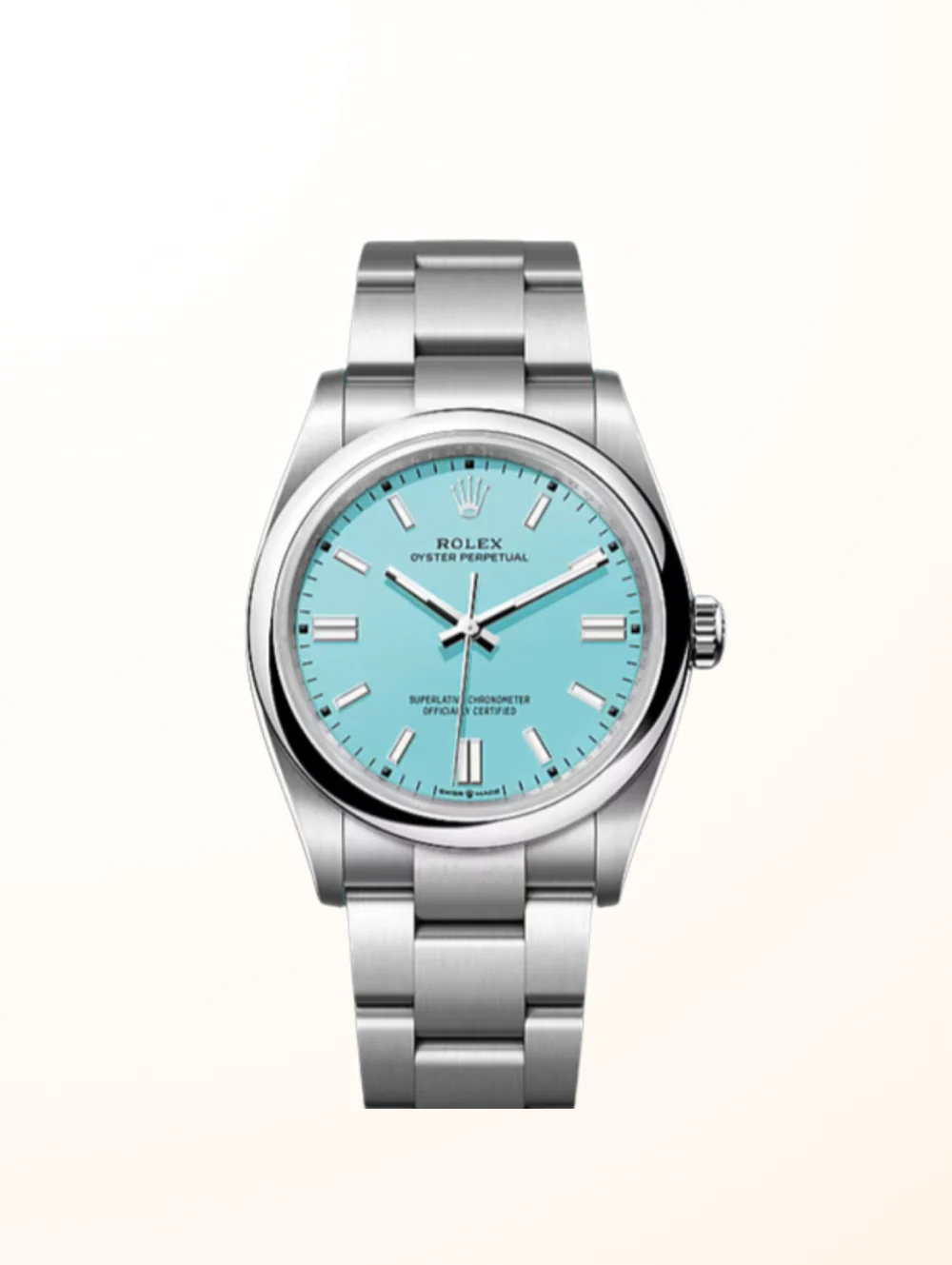 O Rolex Oyster Perpetual é uma mistura clássica de estilo e funcionalidade, com uma caixa elegante, disponível em vários tamanhos e fabricada em aço inoxidável. Seu mostrador limpo e elegante apresenta marcadores e ponteiros exclusivos para fácil leitura. Alimentado por um movimento automático preciso, garante um desempenho confiável. A pulseira Oyster durável e o design à prova d’água e resistente a arranhões fazem do Oyster Perpetual uma escolha atemporal e sofisticada para qualquer ocasião.